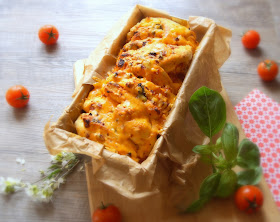 Mélanger le sucre, l'eau et la levure. Mélanger la farine et le sel. Dans le robot réunir le tout et pétrir. Laisser lever dans un endroit tempéré à l'abris des courant d'aire et recouvert d'un linge.Lorsque la pâte à gonflée, la dégazer su r le plan de travail et l'étaler en grand rectangle. La recouvrir de la sauce tomate, cheddar et du basilic ciselé et/autre. Couper la pâte en 3 bandes dans la largeur et en 4 bandes dans la longueur. Couper des carrés et les empiler les uns sur les autres et les ranger en les dans le moule chemisé à la verticale. Laisser encore lever une vingtaine de minutes pendant que vous préchauffez le four. Au moment de cuire, verser un léger filet d'huile d'olive dessus. Enfourner environ 30 min à 180°. Les 5 dernière minutes remettre un peu de cheddar dessus. Servir aussitôt bien chaud, et profiter du cheddar fondu.